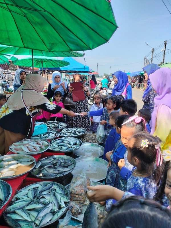 วันที่ 4 สิงหาคม 2566 คณะครูสายชั้นอนุบาล นำนักเรียนศึกษาแหล่งเรียนรู้นอกสถานที่ ในตลาดนัดตาบา และสถานที่ทำกือโป๊ะในชุมชน เพื่อใช้ในการจัดประสบการณ์การเรียนรู้ในชั้นเรียนแบบโครงงาน เรื่อง “กือโป๊ะ